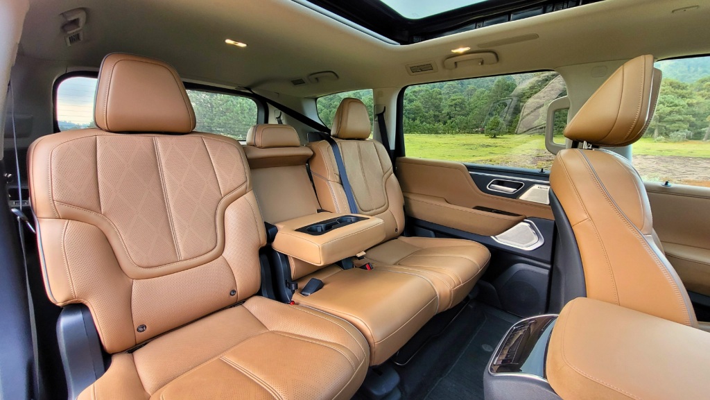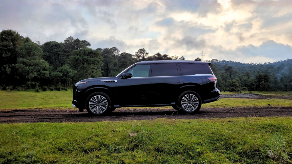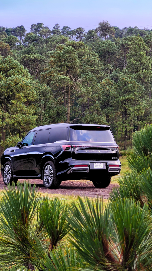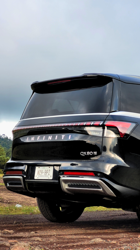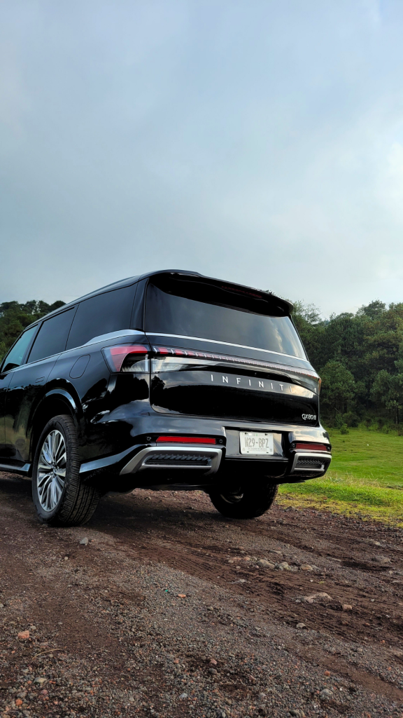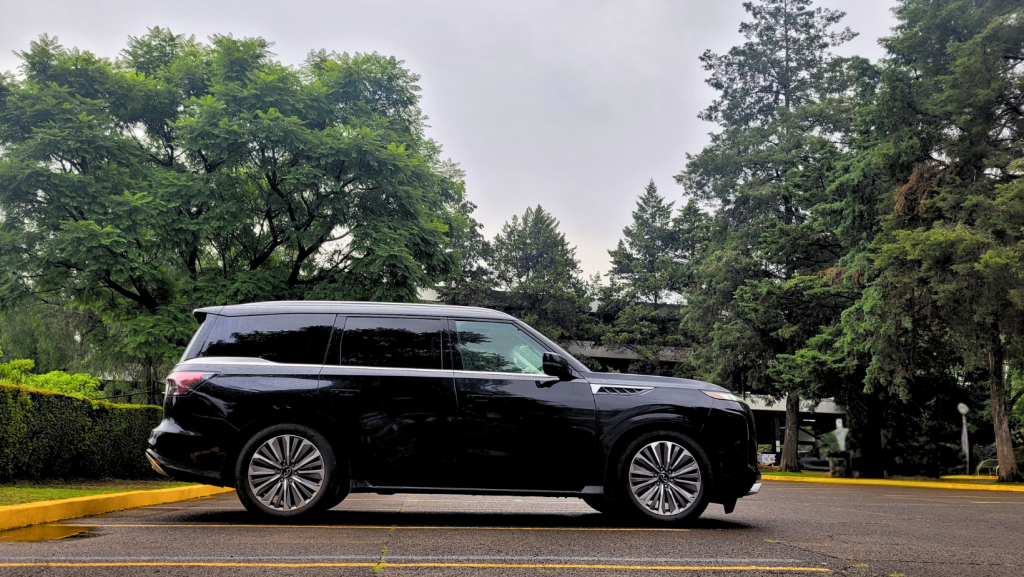 La QX80 pertenece, sin duda, al segundo grupo, su presencia en el tráfico urbano es monumental; la marca denomina “teclas de piano digital” a su nueva parrilla de doble arco y los faros afilados, que genera un respeto inmediato, por lo que los autos, motocicletas e incluso camiones tienden a hacerse a un lado con naturalidad; y es que con sus 5.36 metros de largo, 2.35 metros de ancho y 1.95 metros de altura es un vehículo que impone de forma natural.