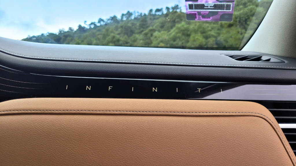 - La Sala de Conciertos (Klipsch): INFINITI se asoció con Klipsch (marca que usa Stellantis en sus autos premium) para este sistema. Y no es cualquier sistema: es el Reference Premiere de 24 bocinas y 1,200 watts. Pero el “truco” miyabi no es el volumen, es el Audio Individual y la experiencia surround. ¿Qué es eso? Hay bocinas en las cabeceras del conductor y copiloto. Esto permite que el conductor, por ejemplo, ponga las instrucciones del navegador o una llamada telefónica solo en su asiento, mientras el resto de los pasajeros siguen escuchando música o escuchar los efectos para ampliar la espacialidad de los instrumentos en tu canción favorita. ¡Es una genialidad!